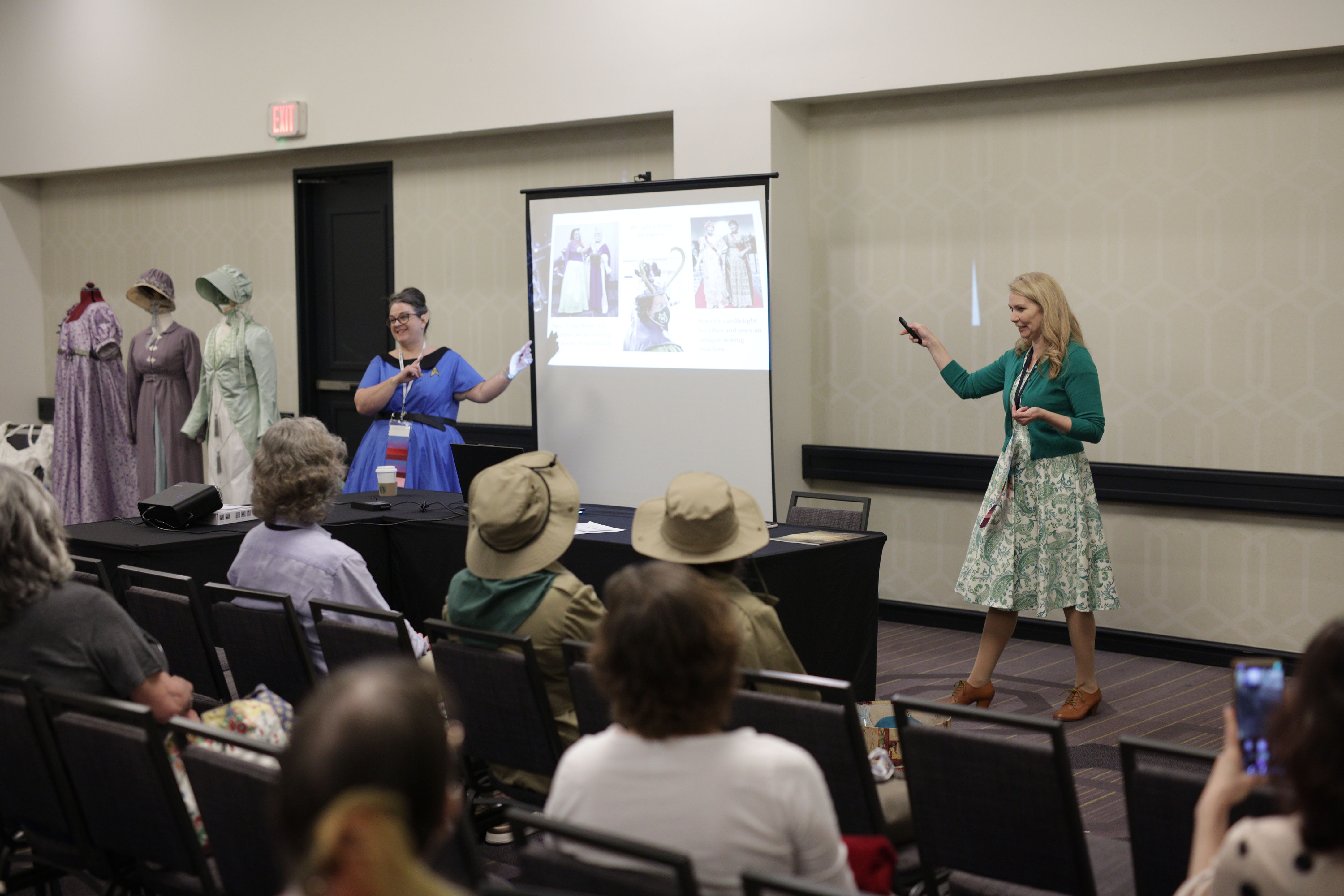 Hotel Liaisons Maegen Hensley and Jane Cadieux welcome you to Costume College at the Sheraton LAX—where the elevators are slow, the costumes are spectacular, and everyone seems to know where they’re going. (We promise, they don’t.)